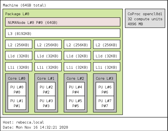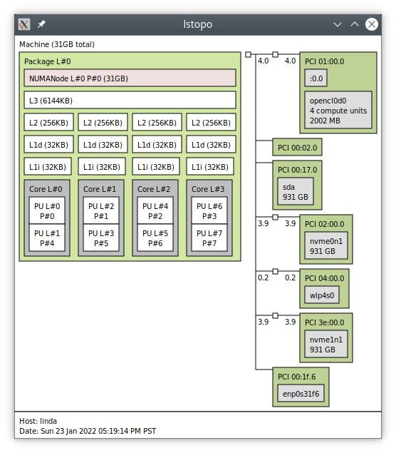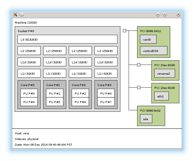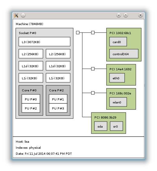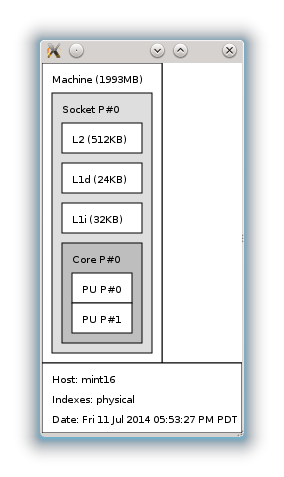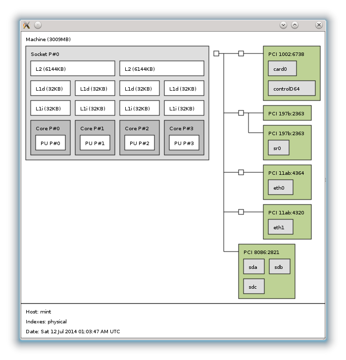 These screenshots were generated by a program called lstopo (that's a lowercase 'L' and lowercase 'O's, not zeros) and it is part of the Portable Hardware Locality (hwloc) project. To install in Debian-based systems (e.g. Ubuntu and Mint):And you're good-to-go.sudo apt-get install hwloc