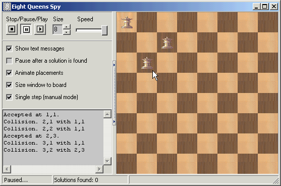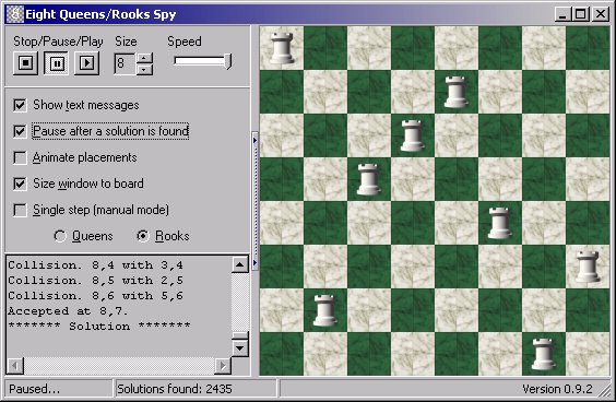 Several years ago, a Digipen student (John Lykins) took his 8-Queens implementation and created a 3D driver for it: