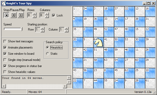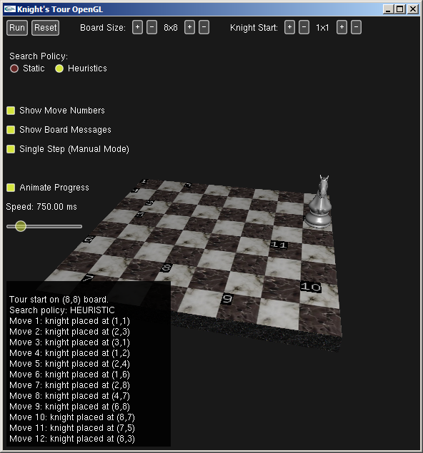 An OpenGL version of the driver for the Knight's Tour algorithm.