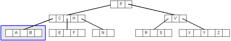 - Now, the node with B has at least 2 keys and is a leaf node, so we can simply